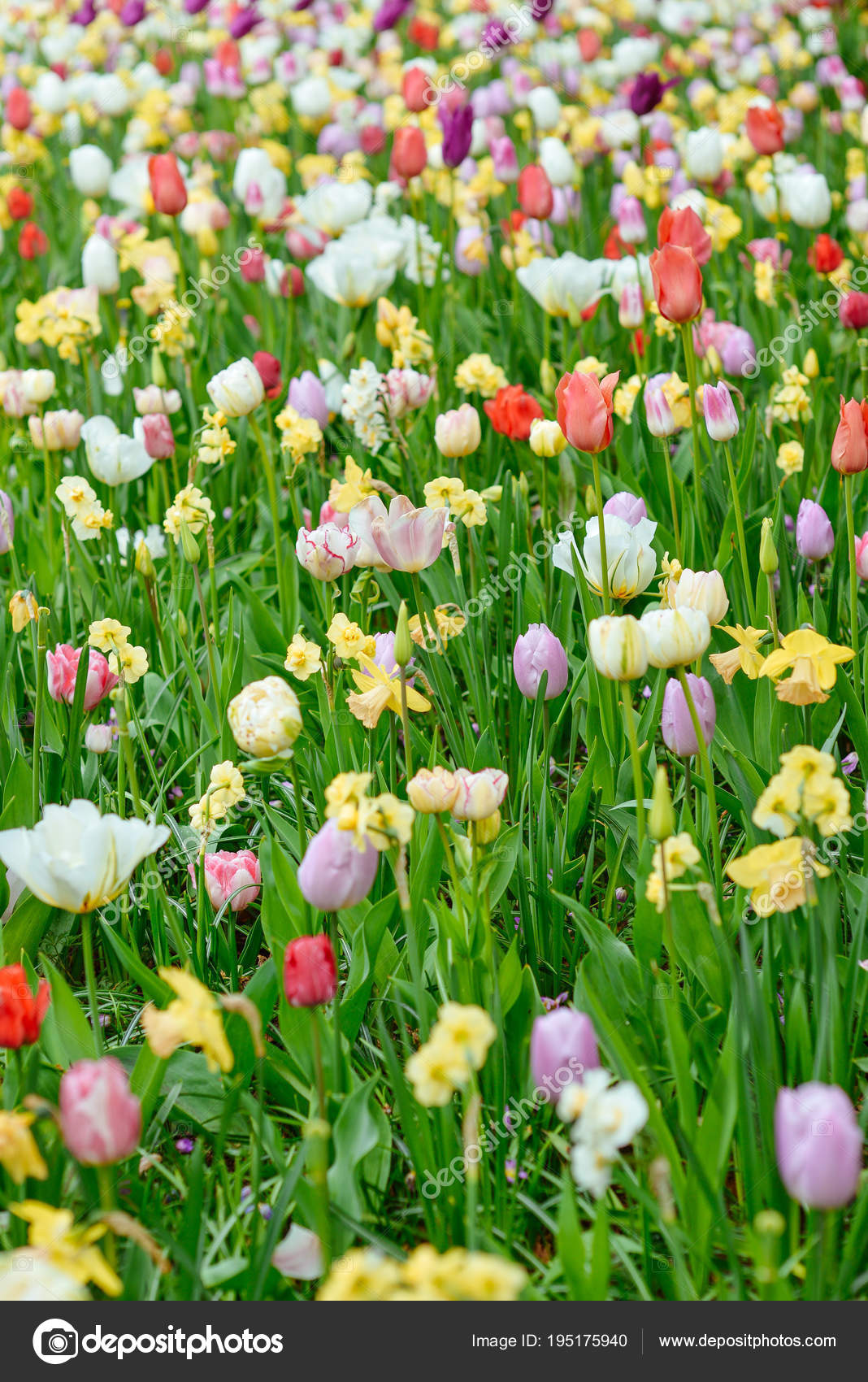 Colorful Variegate Kinds Tulips Flowers Close Photo Stock